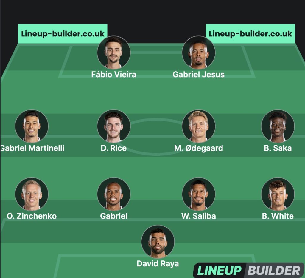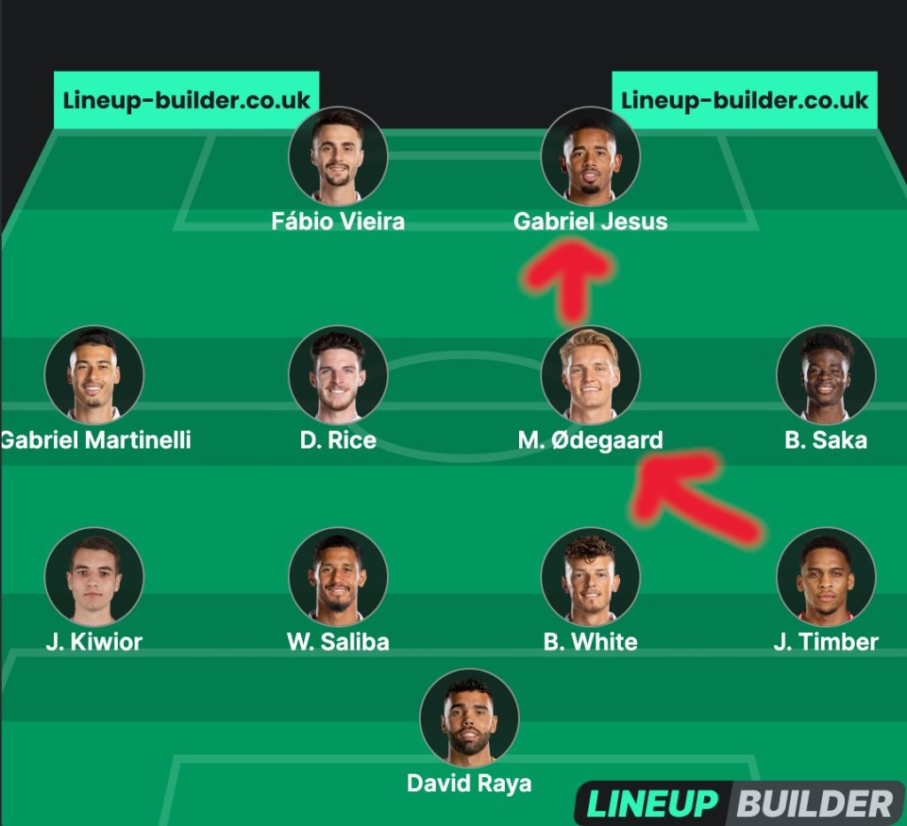 The other solution, which may be deemed favourable due to the inclusion of Gabriel over Kiwior, who is a less-proven entity in this Arsenal side, is to simply switch Ødegaard to the left, and Vieira to the right.